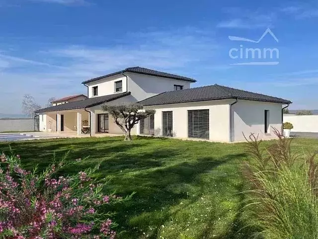 Villa récente de conception contemporaine comprenant, sur une surface de 182 m² habitables, au rez-de-chaussée : un hall d'entrée dessert une vaste pièce de séjour avec un espace cuisine entièrement aménagé. Un dégagement dessert ensuite une suite parentale avec espace dressing et salle de bains privative, un bureau avec placards de rangement, et des toilettes indépendantes. À côté de la cuisine, un cellier buanderie. À l'étage, 3 grandes chambres avec placards, une deuxième salle de bains tout équipée et des toilettes indépendantes. La villa bénéficie d'un grand garage pour deux véhicules, d'une terrasse adjacente au séjour et à la cuisine, à proximité d'une très belle piscine chauffée avec volet immergé pour la sécurité. Un petit pool house avec sanitaires. La villa bénéficie de nombreuses prestations modernes et fonctionnelles : climatisation, aspiration centralisée, volets roulants motorisés avec centralisation, etc. Le terrain de 2147 m², plat et clos, profite d'une cour spacieuse et d'espaces gazonnés et arborés, dans un quartier calme et résidentiel aux abords du village de Jarcieu, à moins de 10 km de l'accès autoroutier du péage de Chanas. Honoraires à la charge du vendeur - Montant estimé des dépenses annuelles d'énergie pour un usage standard : 559€ ~ 2015€ - Alain FAURE - Agent commercial - EI - RSAC Romans 443 914 361 - RCS 40834475200154 - Caisse de garantie QBE L'immobilier vous intéresse, contactez-moi