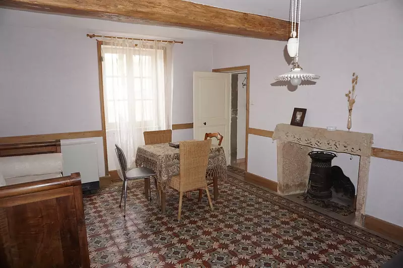 - 2ème maison avec pierres et poutres apparentes : hall d'entrée, cuisne, salle d'eau, wc et à l'étage : deux chambres.
