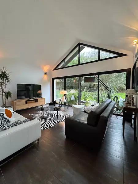 CAUDAN MAISON D'ARCHITECTE DE 194M2 AUX PRESTATIONS SOIGNÉES A VENDRE ! LA VAGUE IMMOBILIÈRE ! Venez découvrir cette sublime maison de 2008 avec vie de plain pied ou les prestations sont au rendez-vous ! Composée d'une pièce à vivre ultra lumineuse de plus de 70m2 avec cuisine équipée et aménagée, salon avec déplafonné. Une grande chambre avec accès terrasse, un dressing, une salle de bain avec douche et baignoire, buanderie et wc séparé. A l"étage une mezzanine surplombe le salon, quatre chambres dont deux avec balcon, salle d'eau et wc séparé. Vous bénéficiez également d'un garage de 27m2 et de l'espace pour stationner d'autres véhicules, jardin clos et paysagé. Excellente performance énergétique (géothermie/chauffage au sol) ! Bien d'exception ! Prix net vendeur 640 000 euros et 5%ttc d'honoraires charge acquéreur. Les informations sur les risques auxquels ce bien est exposé sont disponibles sur le site Géorisques : www.georisques.gouv.fr (5.00 % honoraires TTC à la charge de l'acquéreur.)