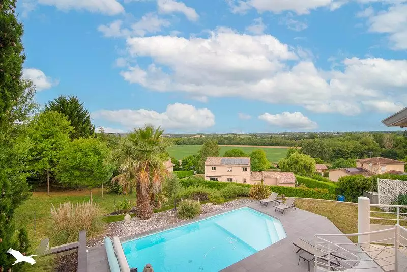 Dans un environnement résidentiel au calme et sans vis à vis, venez découvrir cette maison d'architecte avec vue dominante sur la vallée de la Save comprenant une suite parentale, trois chambres, un bureau, deux salles de bain, une buanderie, un séjour donnant accés à une grande terrasse, une piscine sur une parcelle de 1700 m².