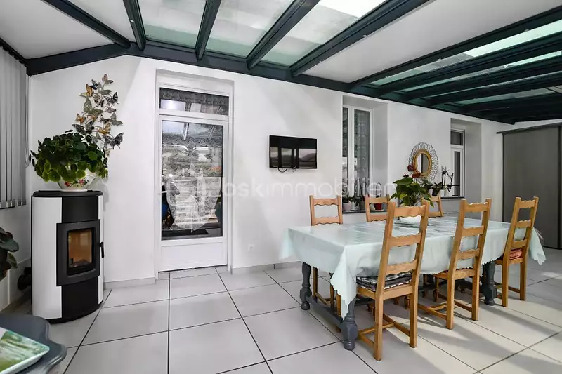 Dès l'entrée, le ton est donné : marbre, volumes généreux et belle luminosité. Le salon avec cheminée, la salle à manger et la cuisine équipée s'ouvrent sur une véranda chauffée de 20 m², idéale en toute saison. Une grande chambre au rez-de-chaussée, ainsi qu'une salle de douche moderne, permettent une vie de plain-pied très appréciée .