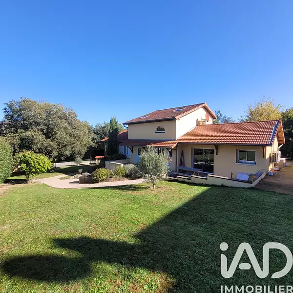 iad France - Corinne Barou vous propose: BELLE VILLA SUR SOUS SOL TOTAL, TERRASSE ET JARDIN. Implantée au centre de sa parcelle, cette maison très lumineuse comprend de plain pied une cuisine équipée et une pièce de vie, toutes deux donnant sur une grande terrasse couverte , une grande chambre avec salle de bains (conforme PMR) avec porte fenêtre pour accès direct à l’extérieur (rampe d’accès), 3 autres chambres, et une salle de bain. Le plus : un magnifique espace en mezzanine surplombe la pièce de vie de plus de 30 m2, pouvant faire office de salon, ou bureau. L’exposition de la maison est EST-OUEST. Chauffage aérothermie et poële à bois