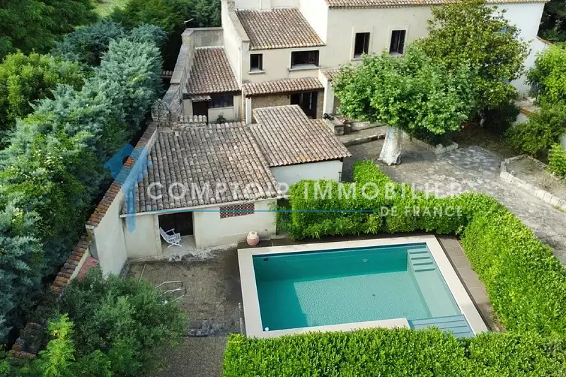 La propriété arborée est accessible par un grand portail en fer forgé et dispose d'une piscine entourée de verdure. Le mas comprend un séjour avec une cheminée en pierre, une cuisine séparée, des pièces à aménager, 4 chambres à l'étage, des annexes et plus. Contactez-nous pour le découvrir !