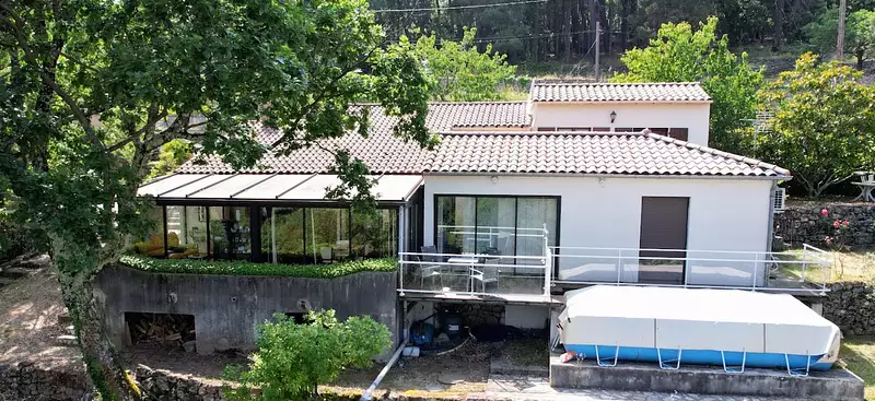 Construite en 1982 et agrandie en 2010, la maison principale propose environ 150 m² habitables, comprenant une pièce de vie lumineuse, une véranda climatisée utilisable toute l'année, trois chambres, dont une suite parentale avec salle d'eau privative, ainsi que de nombreux espaces de rangement.