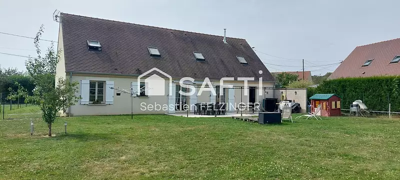Ce pavillon spacieux se compose de 9 pièces dont 6 chambres, une cuisine équipée, un salon avec poêle à granulés, un bureau, une salle de bains avec douche et baignoire, et un cabinet de toilette. À l'étage, une salle de jeux de 38 m² dessert 4 chambres lumineuses. Possibilité d'aménager une salle de bains supplémentaire. Un garage, une terrasse exposée plein sud et des équipements récents (ballon thermodynamique, pompe à chaleur, isolation de 2021) complètent cette belle propriété construite en 2008.