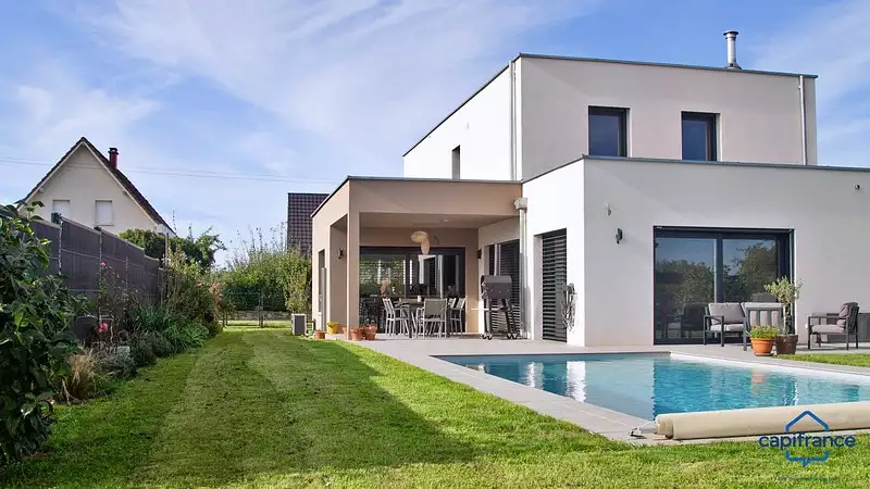 Sur la commune de Helfrantzkirch, cette belle maison d'architecte se situe dans une petite rue, au calme.