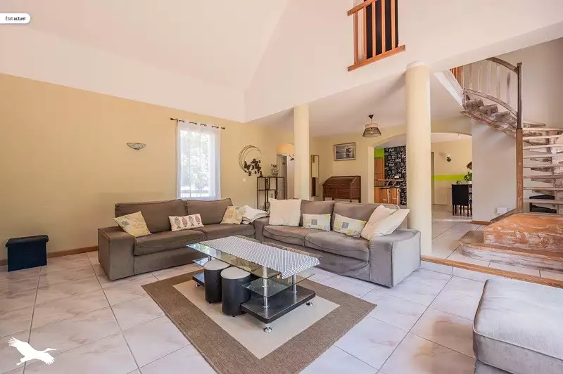 Venez vite découvrir cette sublime maison d'architecte des années 2000 de 185m² habitable sur plus de 2 800m² de parcelle. Ce bien comprend, une piece de vie d'environ 77m² avec une suite parentale en vie de plain pied. A l'étage, 4 chambres, un bureau, une salle de bains. Wc a chaque niveau. Garage double, aucun travaux a prévoir. Proposition d'aménagement virtuel non contractuelle en dernière photo.