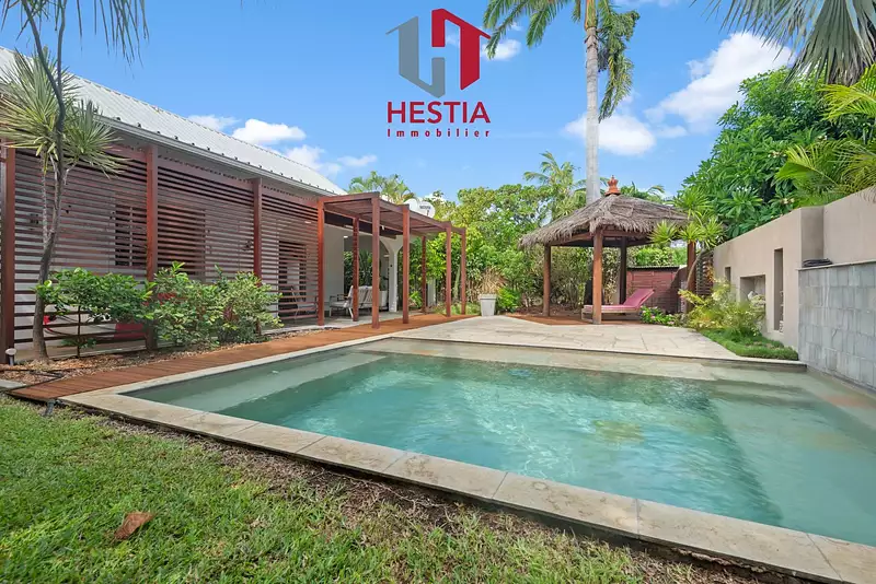 La villa dispose de 4 chambres, d'une cuisine ouverte sur un grand séjour. À l'extérieur, vous profiterez d'une piscine avec cascade accessible depuis la terrasse, d’autres espaces à découvrir sur place.