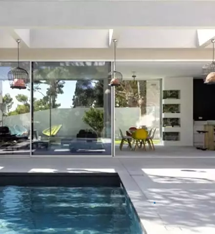 L’extérieur de la maison s’articule autour de nombreuses terrasses (patio dinatoire, solarium, salon d’agrément), la piscine au sel de 10*4 dispose de l’option nage à contre-courant. Une cave avec roche apparente et un garage pour deux voitures complètent l’ensemble.