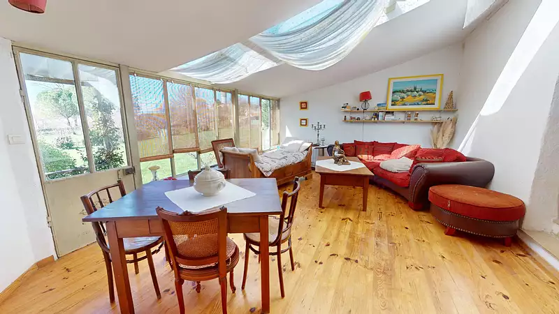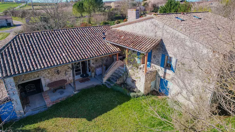En exclusivité : dans notre belle campagne vallonée du Lot et Garonne, très belle maison en pierre bâtie sur cave avec une grange attenante aménagée. C'est dans une petite cours privée et fermée de la rue par un beau portail en fer forgé que se tient cette jolie maison en pierres du pays. Elle offre environ 185 m2 habitables avec : une belle salle de réception dans la grange pour environ 40m2, une mezzanine la relie à la maison. Une véranda très lumineuse et disposant d'un poêle à bois ajoute une belle surface à la pièce de vie d'environ 55m2 où les soirées d'hiver se passeront douillettement devant la grande cheminée. L'espace nuit se compose : de trois chambres dont une avec une véranda faisant office de bureau, et une avec accès aux combles aménagées. Une salle de bains complète, ainsi qu'un wc séparé. Pour votre confort : chauffage central au fioul, double vitrage partiel, assainissement individuel fonctionnel. Plus qu'une maison en pierre bourrée de charme, vous achetez ici un art de vivre dans ce petit village aux portes du Quercy.Afficher plus