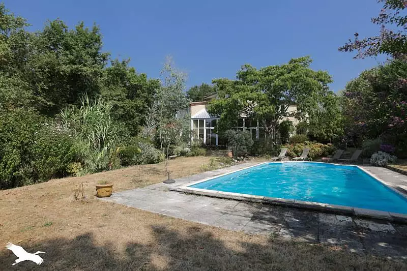 Maison d'architecte à étage, d'environ 185 m² habitables, comprenant entrée, pièce de vie, cuisine avec coin repas, véranda, cellier, wc, chambre avec salle d'eau. Pour l'étage, bureau, 2 dégagements, 4 chambres, 1 salle d'eau et 1 salle de bain. Garage et sous/sol. Le tout sur une parcelle arborée de 4500 m² avec piscine et vue.
