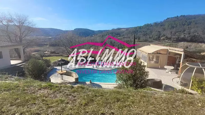 TI3038 - SAINT MONTAN, Ardeche 20 min MONTELIMAR, Venez découvrir ce petit paradis avec vue dominante. Propriété tout confort composée d'une villa de plein pied 5P, 2 logements indépendants de 30m² et 40m², pool house, piscine, jacuzzi, terrain de pétanque.