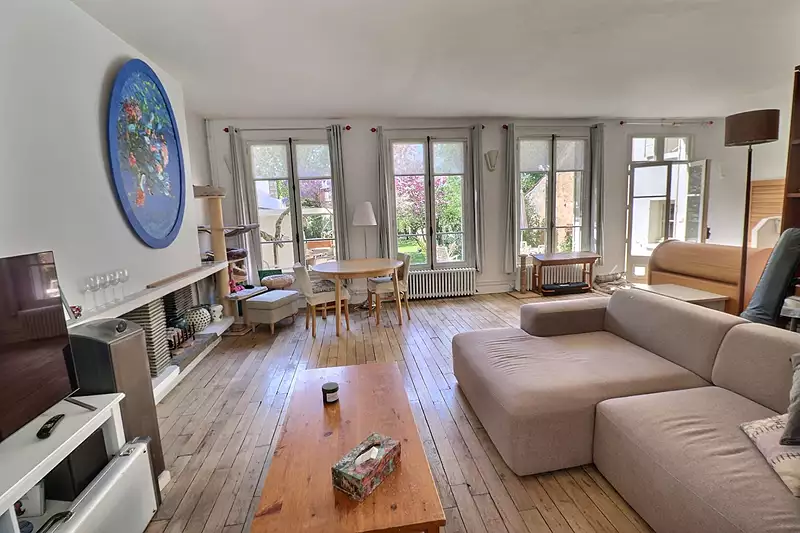 Amoureux des maisons de charme? Venez découvrir cette magnifique maison ancienne à Saint Nom la Bretèche! Idéalement placée, proche du château, dans une rue calme, à proximité des commerces, des arrêts de bus pour le lycée international de St Germain en laye, Versailles, gare de Saint Nom la bretèche (ligne L et Tram 13), cette maison d'environ 185m² a un merveilleux jardin clos. Entrée, salon avec cheminée, et salle à manger, cuisine, bureau, wc, accès à la terrasse et au jardin plein sud. Au premier étage, une chambre, salle de bain avec wc. Au deuxième étage, 2 grandes chambres dont une avec salle de douche et wc. Combles : chambre avec salle de douche et wc. Chauffage gaz. Pièce de stockage dans le jardin. 2 cabanons de jardin. 835.000 euros HAI, soit 806.764 euros NET VENDEUR + 3.5% TTC de frais d'agence charge ACQUEREURS. (3.50 % honoraires TTC à la charge de l'acquéreur.)