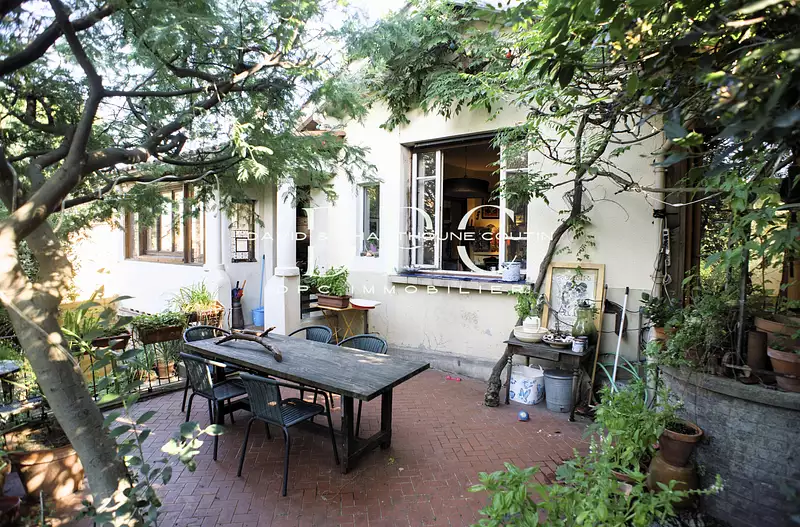 TOULOUSE / GUILHEMERY - Maison d'habitation du XIXème siècle d'une surface au sol de 242m2 dont 185m2 habitable. La partie principale, une maison de 117m2 habitable et d'une partie mansardée de 53m2 supplémentaires, sur 2 niveaux, de type T5/6 avec 4 chambres et des espaces où on pourrait créer d’autres chambres. Le plus du rdc est son salon très agréable à l’ambiance familiale, avec sa double exposition, sa cheminée, sa mur de briques et galets, et la grande cuisine, tous deux tournés vers le jardin verdoyant.