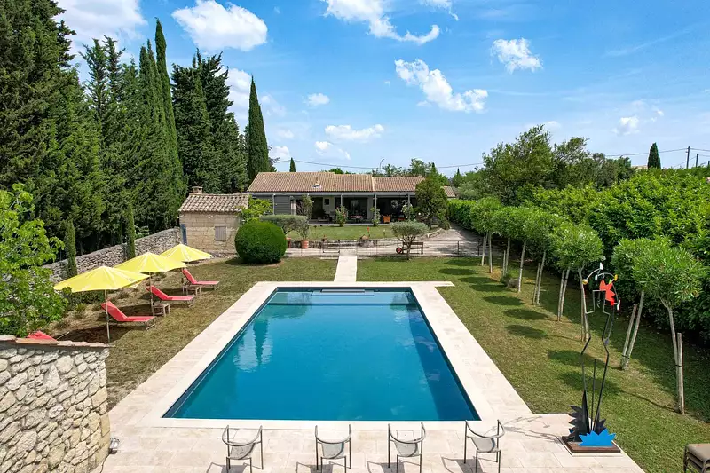 Uzes: propriété avec piscine, jardin et profondes vues jusqu’aux Cévennes