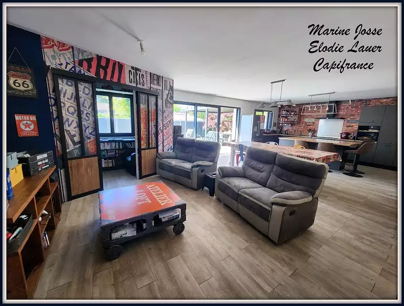 Dès l'entrée, vous serez séduit par la pièce de vie de 59 m², baignée de lumière, avec sa cuisine américaine ouverte sur le séjour. Un coin bureau y a été aménagé pour travailler en toute tranquillité tout en restant connecté à la vie familiale (possibilité de récupérer cet espace). Le poêle à bois apportera chaleur et ambiance à vos soirées d'hiver.