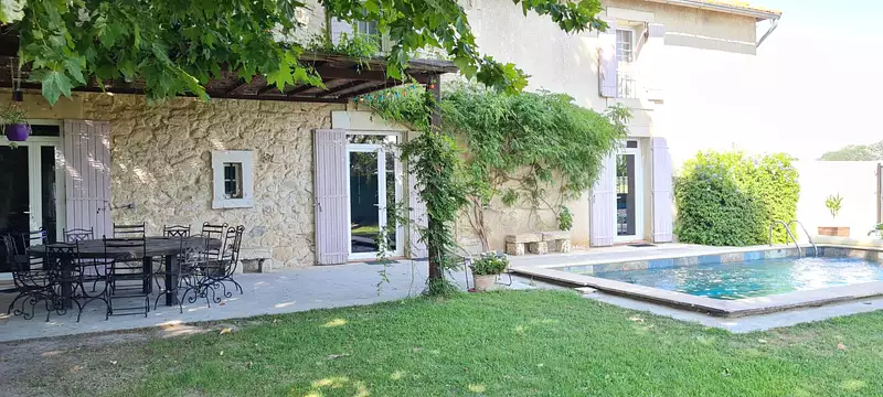 En exclusivité sur BEAUCAIRE, secteur plaine. Magnifique Mas mitoyen, très bien rénové, d'une superficie de 186 m², sur un terrain d'environ 550 m². Vous serez séduits par les volumes de ce Mas et ses 5 chambres et 3 salles de bains. Au rez-de-chaussée, vous trouverez un salon avec grande cheminée, une salle à manger, une cuisine ouverte, une chambre avec sa salle d'eau, un WC et une buanderie. A l'étage, 4 chambres et 2 salles de bains avec WC, un dressing / lingerie, et une pièce restant à aménager. Côté extérieur, vous pourrez profitez d'une spacieuse terrasse avec sa pergola, d'un jardin arboré, d'un coin pétanque avec bar extérieur, et une piscine 8m x 4m façon Bali. Chauffage par chaudière au fioul, et 4 climatisations réversibles (2 par niveaux). Non raccordé aux réseaux, ce Mas est équipé d'un forage et d'une micro station d'épuration installée en janvier 2025, et éligible à la fibre. Aucun travaux à prévoir. Honoraires d'agence à la charge du vendeur. Date réalisation des diagnostics : 23/11/2025 Consommation énergie primaire : C ( 172 kWh/m²/an ) Consommation énergie finale : 121 kWh/m²/an Montant estimé des dépenses annuelles d'énergie pour un usage standard : entre 3.160 et 4.360 euros par an. Prix moyens des énergies indexées sur les années 2021 - 2022 - 2023 (abonnement compris) Les informations sur les risques auxquels ce bien est exposé sont disponibles sur le site Géorisques : www.georisques.gouv.fr La présente annonce immobilière a été rédigée sous la responsabilité éditoriale de Monsieur BURAVAN Régis, mandataire indépendant en immobilier, agent commercial de la SAS IMD Immobilier, immatriculé au RSAC de Tarascon sous le numéro 490 253 630.