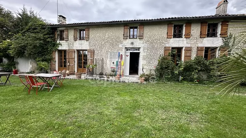 Située au calme absolu, au fond d'une impasse et entourée de verdure, cette charmante longère charentaise offre une belle superficie habitable de 186 m² sur un terrain plat, clos et arboré de 1 641 m², sans aucun vis-à-vis.