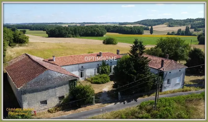 Magnifique corps de ferme situé en hauteur avec une superbe vue sur la campagne environnante . Ce petit hameau est à peine à 5 minutes de Chalais ( avec toutes les commodités, commerces, cabinet médical, écoles jusqu'au collège, gare desservant Angoulême et Bordeaux plusieurs fois par jour) et à 10mn de la Dordogne. Idéalement situé dans les très beaux paysages boisés et vallonnés du sud Charente , vous pouvez rejoindre de nombreux sentiers de promenades, à pieds , à vtt ou à cheval directement de la propriété .