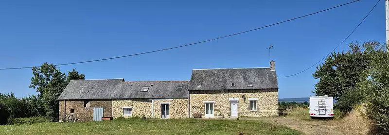 la maison il y a une grange en pierres couverte en