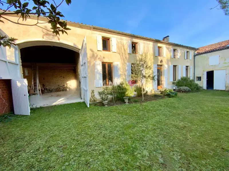 Sur un terrain de 680m², dans un environnement paisible et sans voisins mitoyens, découvrez cette charmante maison charentaise, caractérisée par ses espaces lumineux et son architecture traditionnelle préservée. Chaque élément de la propriété a été rénové avec une qualité exceptionnelle, respectant les normes de l'art. La maison principale comprend une cuisine, une vaste pièce de vie de plus de 59m², un salon de plus de 29m² et des toilettes. À l'étage, vous trouverez un boudoir, deux chambres spacieuses de 30m² chacune, ainsi qu'une salle de douche avec toilettes, avec la possibilité de créer une troisième chambre. Le jardin clos de murs en pierre, avec un portail classé, abrite une dépendance de 9m², idéale pour une salle de musique ou autre, ainsi qu'un chai de plus de 54m² au sol avec une mezzanine attenante à la maison. Des ouvertures préalablement réalisées permettent d'envisager l'extension de la maison principale via le chai ou la dépendance. De plus, une seconde dépendance de plus de 200m², équipée d'un insert à bois, offre de nombreuses possibilités d'aménagement, que ce soit pour agrandir la propriété ou créer une seconde habitation, grâce à ses deux entrées distinctes. Cette propriété est également idéale pour un atelier d'artiste ou un entrepreneur. La toiture et la charpente de l'ensemble ont été refaites, et le câblage pour l'installation d'une pompe à chaleur est déjà en place. Située dans un magnifique village à 30 minutes de Cognac, à 10 minutes de Matha, à 35 minutes de Saintes et à une heure de la plage de Fouras, cette propriété rare sur le marché est prête à prendre vie selon vos désirs. Un coup de cœur assuré, avec possibilité de visionner une vidéo sur demande. Chers confrères mandataires ou agences, n'hésitez pas à me contacter si vous avez des clients intéressés par ce bien.