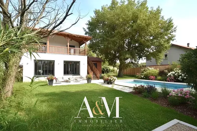 EXCLUSIVITE !! Maison d'exception à Andernos-les-Bains ? 190 m² ? Vue imprenable sur le Bassin Située en deuxième ligne à ANDERNOS, à seulement 25 mètres du Bassin d'Arcachon, sur l'une des plus belles plages d'Andernos, cette superbe maison contemporaine de près de 190 m², réalisée par le constructeur BMC, offre un cadre de vie unique entre confort moderne et panorama d'exception.