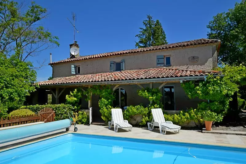 Situee au bout d'un chemin prive, dans un environnement champetre et preserve, cette charmante maison de campagne en pierre beneficie d'un cadre bucolique avec de belles vues degagees sur la campagne. La maison offre environ 187 m2 habitables avec 3 chambres, dont une en rez de chaussee. A cela s'ajoutent de petites dependances non attenantes, ideales pour accueillir famille et amis. Une grande terrasse couverte longe toute la facade, offrant un espace de vie exterieur privilegie avec acces direct a la piscine et une vue imprenable sur la nature. Le tout est implante sur un terrain de 17 862 m2, parfait pour profiter du calme et de l'espace., Contactez Chrome Immobilier Duras : 05.53.83.81.68., Les informations sur les risques auxquels ce bien est expose sont disponibles sur le site Georisques : www.georisques.gouv.fr
