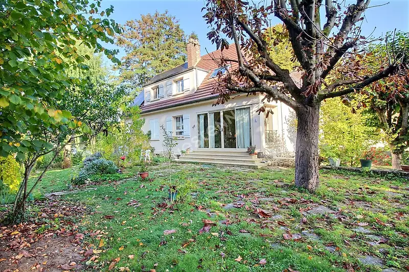 EPERNON Gare à pied, belle maison en meulière offrant de très beaux volumes. 5 chambres dont une suite parentale + bureau. Sous sol total partiellement aménagé. Matériaux de qualité. Très beau jardin arboré de 1584 m² . Du charme et un beau potentiel.