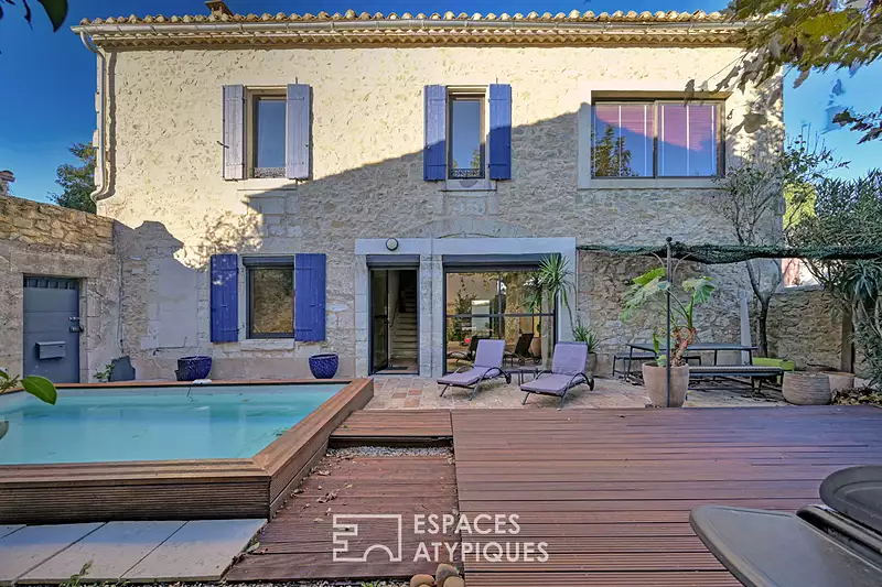 Au coeur d'un village animé, un air de vintage et de rétro souffle sur ce Mas en pierres de 187m2 rénové avec goût proposant un agréable jardin. Découvrez une spacieuse pièce de vie traversante de plus de 95m2 dont 60m2 de salon et une cuisine indépendante et conviviale accueillant la salle à manger. Ses grandes verrières donnent d'un côté, sur un jardin et sa piscine de 5 x 3m et de l'autre, sur une courette (possibilité de créer un stationnement pour un véhicule). A l'étage, 4 chambres spacieuses vous attendent dont une sublime suite parentale de 31m2 avec 4,5m de hauteur sous plafond, véritable cocon avec sa salle d'eau privative et 3 belles chambres se partageant une salle d'eau. Une pépite dans un village doté de tout commerces, proche de l'accès autoroutier et à 10min de la gare TGV CLASSE ENERGIE : C (131) / CLASSE CLIMAT : A (4) Montant moyen estimé des dépenses annuelles d'énergie pour un usage standard, établi à partir des prix de l'énergie de l'année 2021 : entre 1450 euros et 1990 euros. - Les informations sur les risques auxquels ce bien est exposé sont disponibles sur le site Géorisques : www. georisques.gouv.fr Contact: Alexandra 06 18 07 74 02 Alexandra Cluchier (EI) Agent Commercial - Numéro RSAC : 890 423 205 - Nîmes.