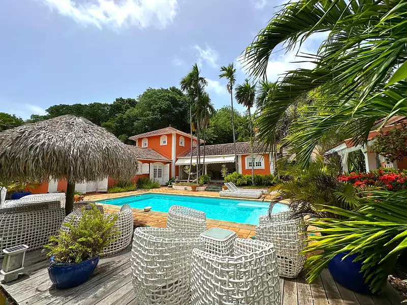 Nichée dans la région du François, a 200 mètres seulement du bord de mer, cette superbe villa offre une combinaison rare de charme insulaire, de vie luxueuse et d'intimité sans pareille. Conçue dans un style distinctif d'inspiration Créole, cette propriété allie harmonieusement élégance et confort. Dotée de trois chambres spacieuses, cette villa propose un grand espace pour la famille, les amis ou les invités. Vous découvrirez en même temps un agréable bungalow pour recevoir famille ou amis. La superbe suite principale est une caractéristique remarquable, offrant une vaste retraite avec une salle d'eau privée. Les autres salles d'eau sont soigneusement réparties pour assurer la commodité et la fonctionnalité dans toute la maison. La villa est entourée d'un jardin luxuriant et magnifiquement aménagé qui renforce son sentiment d'isolement tout en créant une oasis de tranquillité. Le terrain accueil un parking pouvant recevoir jusqu'à 3 véhicules, ajoutant commodité et praticité à cette retraite luxueuse. Sortez pour découvrir votre propre coin de paradis. La piscine est parfaite pour profiter du soleil des Caraïbes. Une terrasse couverte offre un grand espace ombragé pour se détendre, se divertir ou dîner en plein air, tout en profitant de la beauté naturelle qui vous entoure. Située à quelques pas de la mer, cette propriété offre la proximité avec les fonds blancs, et un accès facile aux activités nautiques. Que vous recherchiez un sanctuaire paisible ou une base dynamique pour explorer l'île, cette villa répond à tous les besoins. Ne manquez pas cette opportunité de posséder une maison unique et luxueuse dans l'un des endroits les plus convoités du François. Parfaitement adaptée à ceux qui recherchent le style de vie insulaire ultime, cette villa est vraiment un rêve devenu réalité.
