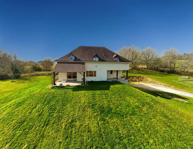 Maison contemporaine offrant une vue imprenable sur la campagne du Périgord Vert, située aux abords d'un charmant village proche de Mareuil-en-Périgord, à seulement 10 minutes des commerces et des écoles.