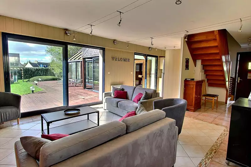 Moëlan-sur-Mer - Située à seulement 350 m de la plage et d'une cale à bateau dans le village de Kersolf, villa de 133 m² lumineuse et fonctionnelle, elle a été rénovée et agrandie de 54 m². Très appréciée en location-gîte, cette villa est vendue meublée avec des réservations pour 2025.