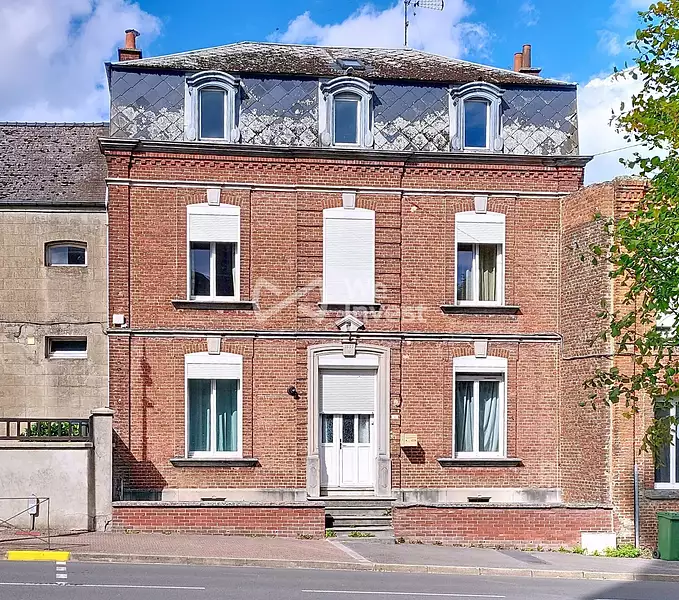Maison de caractère comprenant grand hall d'entrée, salon, salle à manger, cuisine, buanderie, salle de bains avec baignoire et douche, WC. A l'étage: grand palier avec bureau, 4 chambres. A second étage: grande pièce aménagée d'environ 50 m²