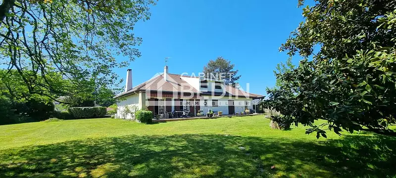 Maison familiale à Cestas Réjouit. Rare sur le secteur de Cestas Réjouit : Maison familiale située dans un environnement exceptionnel alliant le calme et la proximité immédiate des commerces et écoles. Vous serez séduits par son style atypique et la qualité de son jardin arboré et végétalisé offrant une belle perspective visuelle depuis sa terrasse de 45m². Elle se compose d' un vaste séjour traversant, d' une cuisine aménagée pouvant être ouverte sur la salle à manger, de cinq chambres confortables, un grand bureau, salle de bains et salle d' eau, cellier, buanderie, coin cave, carport et garage. Libre à l a vente, cette belle demeure n' attend que vous ! . Les informations sur les risques auxquels ce bien est exposé sont disponibles sur le site Géorisques : www. georisques. gouv. fr. Montant estimé des dépenses annuelles d’énergie pour un usage standard : entre 2100 et 2890 Euros/an (année de référence 2022)