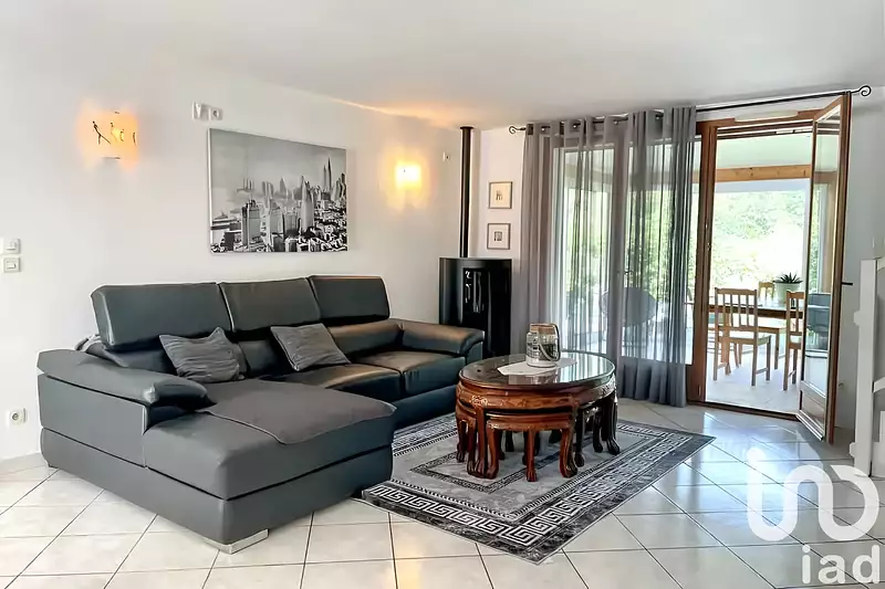 - D'un séjour lumineux de 41.89m² offrant un espace de vie convivial avec poêle à granules