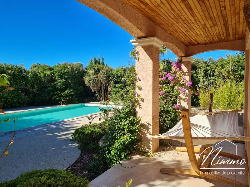 CLARENSAC VILLA T6 188M2 JARDIN PISCINE ABRIS VOITURE. Située dans le secteur prisé de la Vaunage, dans le village de Clarensac, il s'agit d'une villa de type 6 d'une surface de 188 m2 environ, édifiée sur un terrain arborée de 1200 m2. Elle se compose au rez-de-chaussée d'une entrée, grande pièce à vivre très lumineuse avec salle à manger et salon, cuisine séparée ouverte sur un patio très agréable, 2 chambres dont une avec mézannine, un bureau, salle de bains et wc. A l'étage, bénéficiez de 2 chambres supplémentaires, une deuxième salle de bains et wc. A l'extérieur profitez d'un jardin botanique avec une grande pisicine. Belles prestations, exposition sud, climatisation, beaux volumes. Honoraires charges vendeur. Les informations sur les risques auxquels ce bien est exposé sont disponibles sur le site Géorisques : www.georisques.gouv.fr.