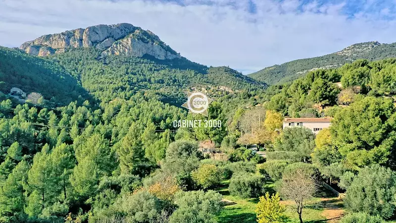 EXCLUSIVITE - A Toulon, Collet Saint-Pierre, nichée dans un écrin de verdure au calme, vue mer et collines pour cette lumineuse maison de type T7 de 188 m2, aux prestations raffinées, comprenant : cuisine ouverte, salon, séjour donnant sur terrasse et jardin, 3 chambres dont 2 avec salles d'eau, 3 WC, un T2 de 28 m2 et un T2 de 30 m2 chacun avec leur terrasse, sur une parcelle de 13 590 m2 avec bassin en pierre au sel de 10 m2, bassin à poissons et parkings pour plusieurs véhicules, à proximité des commerces, des écoles et des bus.