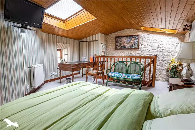 A proximité de MAUZE SUR LE MIGNON maison en pierre comprenant entrées,cuisine équipée ouverte sur salle à manger,salon,quatre chambres dont une au rez de chaussée,salle de bain,salle d'eau,deux wc,cellier,garages,patio,jardin.
