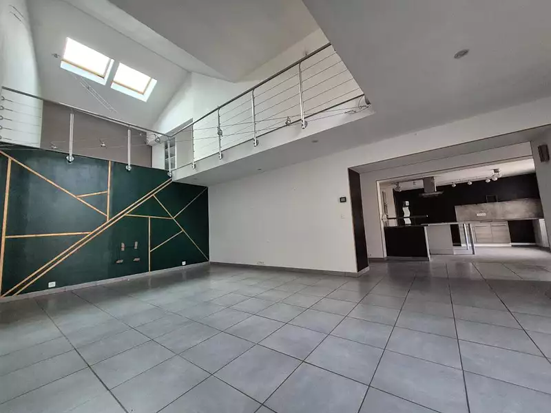 Spacieuse maison de 189 m² avec séjour cathédrale lumineux, cuisine équipée ouverte.