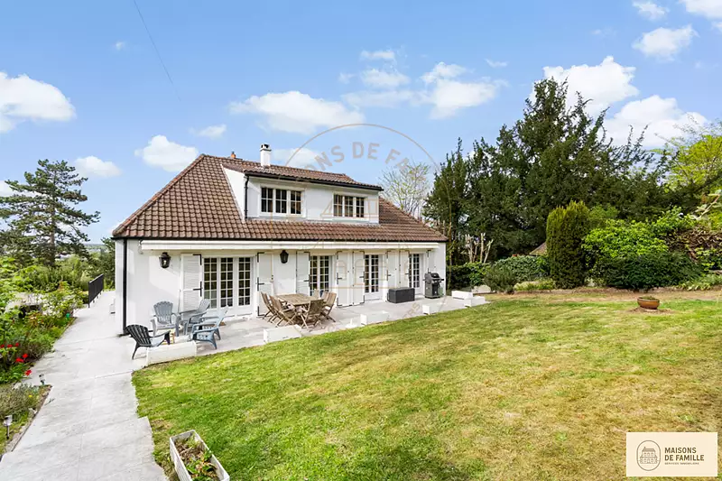 Maisons de Famille Immobilier, l'expert de la vente de Maisons dans l'ouest parisien BOUGIVAL - Située en haut d'une impasse privée, nous vous présentons *Diane* une belle maison de 190m2 habitables en bon état général, construite sur une beau terrain de plus de 600m2 à l'abri des regards avec une vue à couper le souffle. Elle se compose de 3 niveaux. Au rez-de-chaussée, une entrée desservant d'une part, une grande pièce à vivre, la cuisine ouverte sur une salle à manger lumineuse, un beau double séjour et sa cheminée, le tout avec un accès direct sur la terrasse et le jardin. D'autre part, le couloir dessert 3 chambres avec la vue sur la vallée de la Seine, une salle de bains avec baignoire et douche, un espace buanderie et rangements ainsi qu'un WC séparé. A l'étage : le palier dessert la grande suite parentale baignée de lumière avec dressing et une salle d'eau comprenant une douche à l'Italienne, deux vasques et un WC suspendu. Sur le même palier, une chambre avec de vastes rangements, une salle d'eau indépendante avec douche et WC ainsi qu'un espace rangements. Le sous-sol se compose d'un garde manger, la chaufferie, une grande cave à vins ainsi que le vaste garage double et son espace atelier. L'atout principal est le studio indépendant composé d'une chambre, un espace kitchenette, une salle d'eau et un WC séparé. La toiture est en très bon état, les gouttières ainsi que la terrasse ont été refaites en 2023. Accès bus ligne 259 reliant St Germain-en-Laye et Rueil-Malmaison à 3 minutes à pied. L'école Saint-Thérèse est à 10 minutes à pied et le centre du village Bougivalais à 12 minutes à pied. Vous apprécierez les prestations de cette grande maison familiale, son emplacement unique entre la Seine et la forêt ainsi que sa facilité de stationnement pour plusieurs voitures. A visiter sans plus attendre. Contact direct : Benjamin MONDINOT 0789525755 (4.00 % honoraires TTC à la charge de l'acquéreur.) Copropriété de 13 lots - dont 13 lots habitation.().