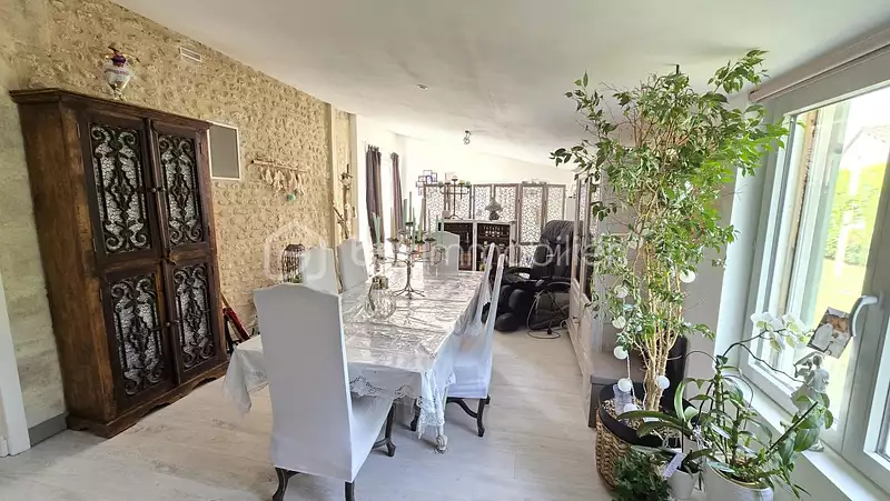 La maison se compose également d'un cellier, d'une buanderie avec chauffe eau thermodynamique et adoucisseur, d'un garage avec fosse de 60m2 et un grenier de 60m2 pouvant agrandir l'étage de la maison ainsi qu'un très grand carport pouvant accueillir deux voitures et un camping car.