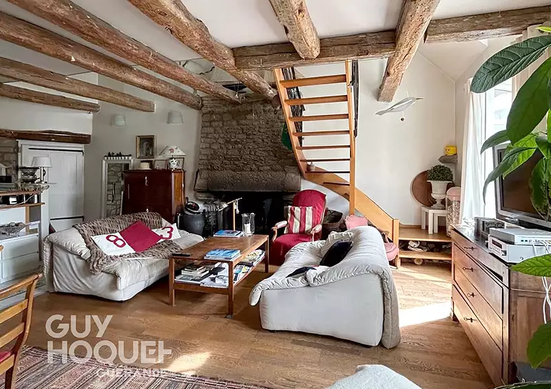 Situé dans un cadre historique unique, ce superbe duplex de 190 m² séduit par ses beaux volumes et son atmosphère chaleureuse. Il comprend une pièce de vie de plus de 45 m2 avec une belle cheminée monumentale qui apporte tout son charme, quatre chambres, un bureau, une mezzanine, une salle de bain, deux w.c indépendants. Très lumineux et idéalement placé, il permet de tout faire à pied : commerces, écoles, services Un bien rare mêlant caractère, confort et authenticité, au coeur de l'une des plus belles cités médiévales de la région. (5.00 % honoraires TTC à la charge de l'acquéreur.) Copropriété de 4 lots - dont 4 lots habitation. (Pas de procédure en cours). Charges annuelles : 40 euros.