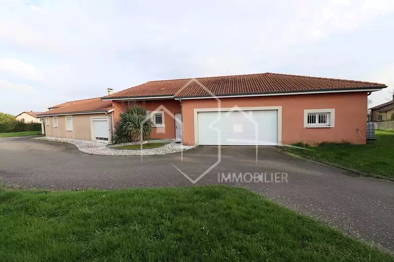 C1189, a vendre sur la commune de la chappelle-de-surieu. Grande Maison T6 de plain pied avec vue, d'une superficie d'environ 190 M2 elle est composée :