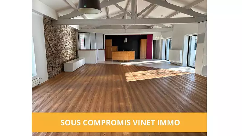 **** SOUS COMPROMIS DE VENTE **** Maison située au centre du bourg offrant environ 190 m² habitables. Entièrement rénovée, elle se compose au rez-de-chaussée d’une vaste pièce de vie spectaculaire d’environ 120 m² équipée d’un poêle à bois offrant de multiples possibilités d'agencement, d’une suite parentale avec dressing, salle d’eau et WC avec accès direct au jardin, ainsi que d’un bureau avec rangements.
