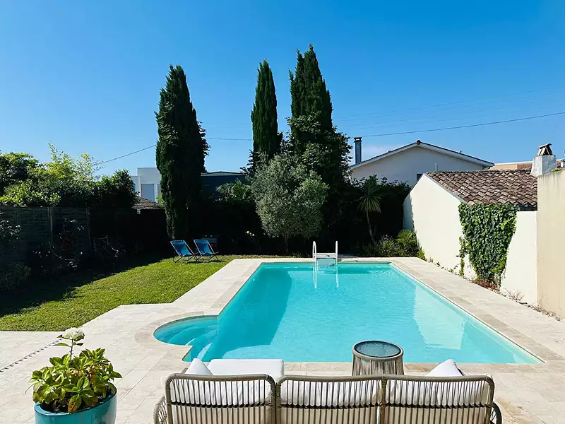 LE BOUSCAT CHENERAIE. Jolie maison Art déco avec une belle piscine au calme, Elle comprend au premier niveau un vaste salon séjour très lumineux et une superbe cuisine équipée, un WC. Au deuxième niveau, vous trouverez une suite parentale équipée d'un beau dressing et d'une salle de bains avec douche et baignoire . Deux chambres, une salle de bains et un WC complètent cet étage. En rez de jardin, vous trouverez une chambre avec salle d'eau et WC, un grand garage de 40 m² et une pièce de stockage . Proche des écoles, des commerces et du tramway, c'est la maison idéale pour une vie de famille!