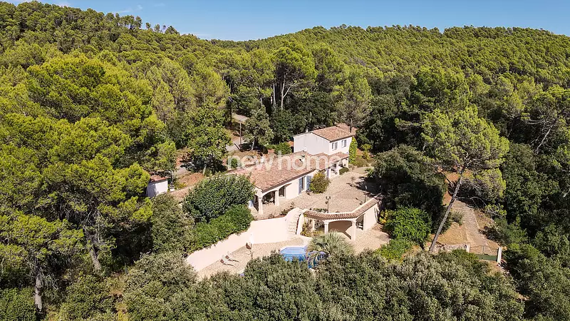 À Lorgues, dans un cadre calme et privilégié au cœur de la nature, magnifique villa d’environ 190 m2 habitables 5 chambres au total et une vue panoramique exceptionnelle. La maison principale se compose d’une grande cuisine et d’un vaste séjour avec plafond cathédrale avec une cheminée traversante donnant à la fois dans le salon et dans la chambre principale, d’une suite parentale avec accès terrasse, d’une seconde chambre, ainsi que de deux appartements indépendants (un T3 et un T2) permettant d’accueillir famille et amis en toute intimité ou de bénéficier d’un excellent potentiel locatif. À l’extérieur, la propriété offre plusieurs espaces de détente avec trois grandes terrasses couvertes totalisant 74 m2, une cuisine d’été, un pool house et une superbe piscine à débordement de 15 x 5 mètres, le tout dans un environnement paisible et verdoyant. Une propriété rare alliant espace, confort et sérénité.