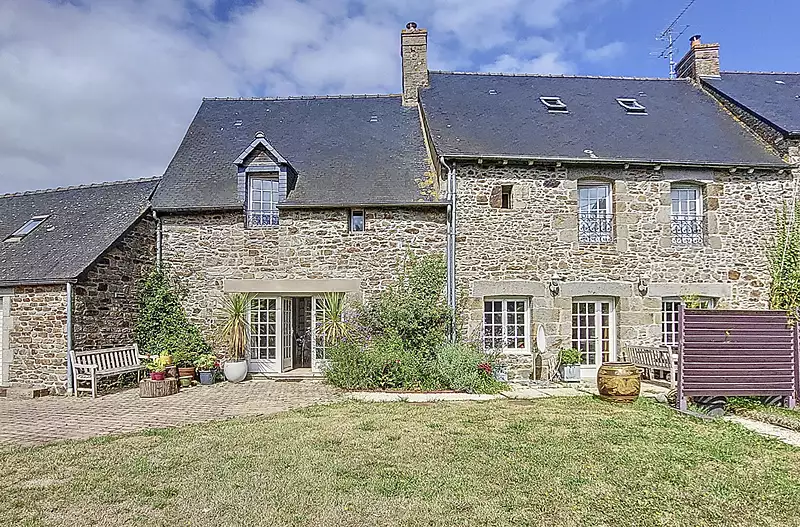EXCLUSIVITÉ : Dans la campagne des Bords de Rance avec ses charmants hameau et promenades au bord de la rivière, ofrrant un accès rapide au centre de PLEUDIHEN avec ses excellentes commodités locales ainsi qu'aux principales voies d'accès à St Malo, Dinard, et Rennes, accès BUS et TER, cette élegante, maison de pays en pierre constituerait la maison familiale idéale. La maison est bien conçue avec tout le confort de la vie moderne tout en conservant de belles caractéristiques d'origine et propose un intérieur clair, lumineux et modulable comprenant au rez-de-chaussée ; un charmant séjour ouvert double exposition avec poutres de caractère et cheminée avec poêle à bois, une cuisine/salle à manger aménagée et équipée avec cheminée avec insert et buanderie, une salle d'eau récemment rénovée et WC séparé et un Espace bureau/studio avec accès direct au jardin arrière clos et privé. Au premier étage, il y a un spacieux palier en mezzanine, offrant de nombreuses utilisations possibles, menant à 3 chambres doubles de bonne taille, une salle de douche avec WC et un dressing bien équipé. Le deuxième étage offre un espace studio/atelier utile qui pourrait facilement être utilisé comme quatrième chambre ou être converti de manière plus permanente en une grande suite parentale avec salle d'eau privative. La maison est entourée de son jardin paysager mature bénéficiant d'un ensoleillement optimal toute et bénéficie d'une grande allée et d'un grand garage/atelier double avec réservoir de stockage d'eau de pluie et de deux préaus ouverts, dont l'un constitue un joli coin repas extérieur couvert et l'autre bien utile pour stocker le bois. Une attractive propriété dans un secteur très recherché. (4.00 % honoraires TTC à la charge de l'acquéreur.) Darren WOODROW (EI) Agent Commercial - Numéro RSAC : - SAINT MALO.