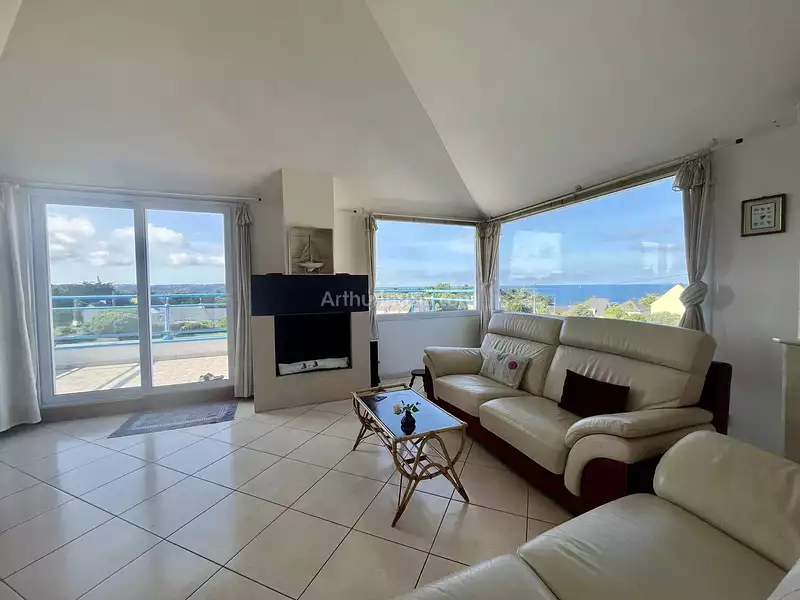 Saint-cast-le-guildo découvrez cette maison au calme, sans vis-à-vis divisée en deux logements actuellement, faciles à réunir. le premier logement vous révèle sa terrasse avec une vue imprenable sur la mer, il vous offre un grand salon / séjour très lumineux avec vue panoramique, une cuisine aménagée et équipée. deux chambres avec chacune leur salle d'eau privative, une petite chambre et un bureau. le second logement vous trouverez, un salon/séjour avec accès à une terrasse, une cuisine aménagée et équipée indépendante, trois autres chambres. un garage et un cabanon de jardin complète ce bien, sur un terrain parfaitement clos et paysagé. a découvrir rapidement. -