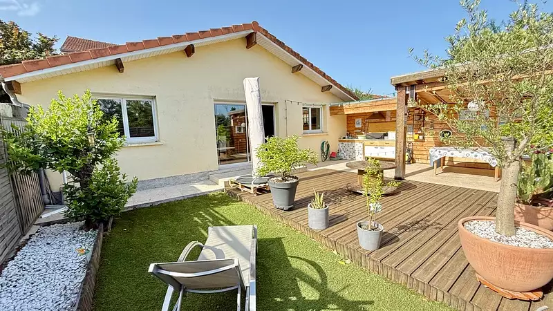 Bel espace de vie donnant vers une grande terrasse conviviale et reposante sans vis à vis . Il n'y a pas plus de terrain, ce qui ravira ceux qui souhaitent au maximum profiter de leur temps libre. On est presque entre l'appartement et la maison, sans les inconvénients des deux !