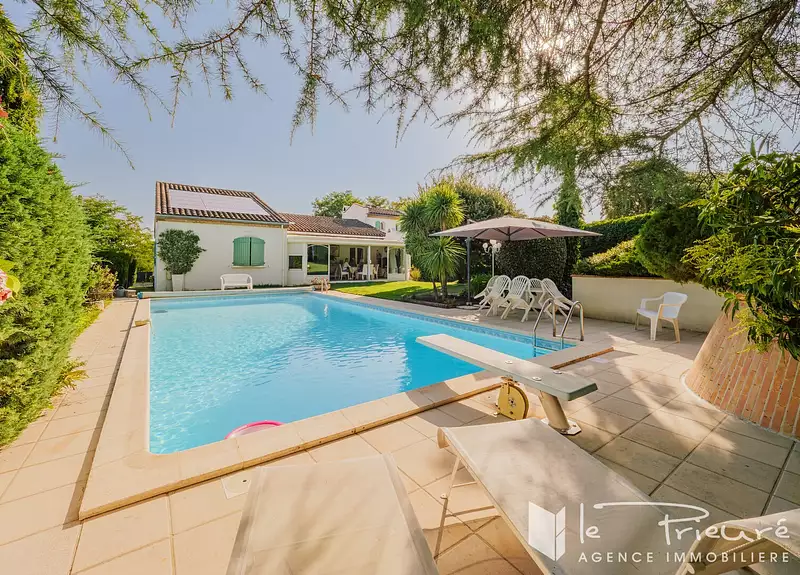 Albi. à 5-6 min du centre-ville. Maison familiale spacieuse avec parc arboré, piscine et belles prestations. Maison, spacieuse, lumineuse et parfaitement entretenue, prête à vous accueillir sans travaux. Elle offre 190 m² habitables, complétés par un grand sous-sol et un garage avec portail motorisé. Implantée sur un parc arboré de 1 222 m² avec piscine chauffée de 6 x 12 m et arrosage automatique, elle séduira les amoureux d'espace et de nature. A l'intérieur, une entrée avec placard s'ouvre sur un double salon agrémenté d'une cheminée centrale à insert, surplombé par une élégante mezzanine, et prolongé par un espace salle à manger. La cuisine indépendante donne accès à une belle véranda de 32 m², climatisée et chauffée, offrant une vue imprenable sur le jardin et la piscine. La maison dispose de quatre chambres avec placards, dont une suite avec salle d'eau privative, ainsi qu'une salle de bains et des toilettes séparées. Les prestations sont de qualité : chauffage par pompe à chaleur et climatisation réversible pour un confort optimal en toute saison, assainissement conforme, portail automatique, alarme, panneaux photovoltaïques et excellente luminosité grâce à une exposition idéale. La proximité immédiate de toutes les commodités complète ses atouts. Une opportunité rare à ne pas manquer. Contactez-nous dès aujourd'hui pour plus de renseignements ou pour organiser une visite. (4.00 % honoraires TTC à la charge de l'acquéreur.)